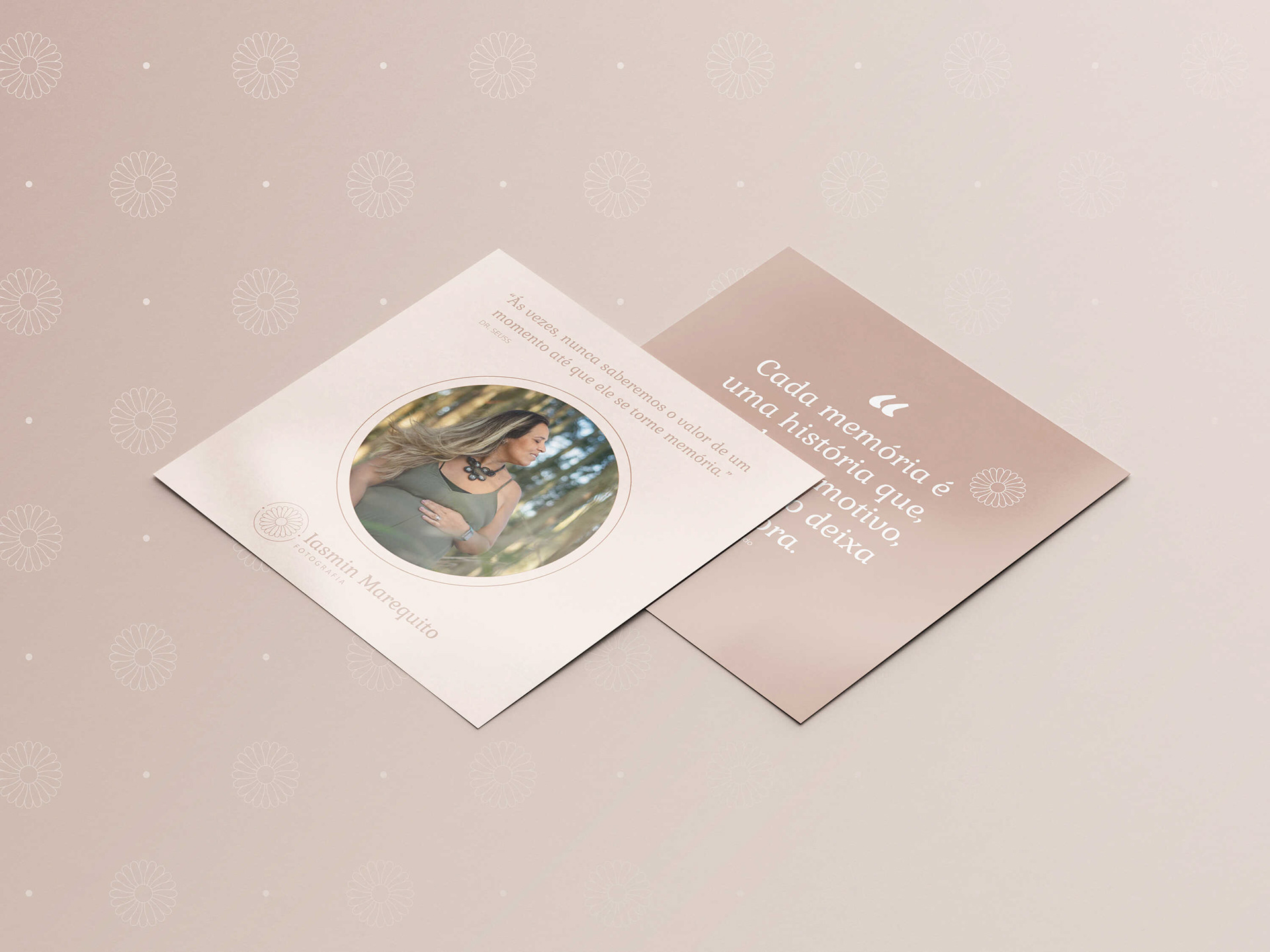 O projeto da Iasmin Marequito Fotografia foi criado com muito cuidado, pensando em sensibilidade, delicadeza e naturalidade — valores que são a base do estúdio. Tudo na identidade visual conversa com isso: o símbolo, as fontes e as cores foram escolhidos para transmitir calma, leveza e afeto.