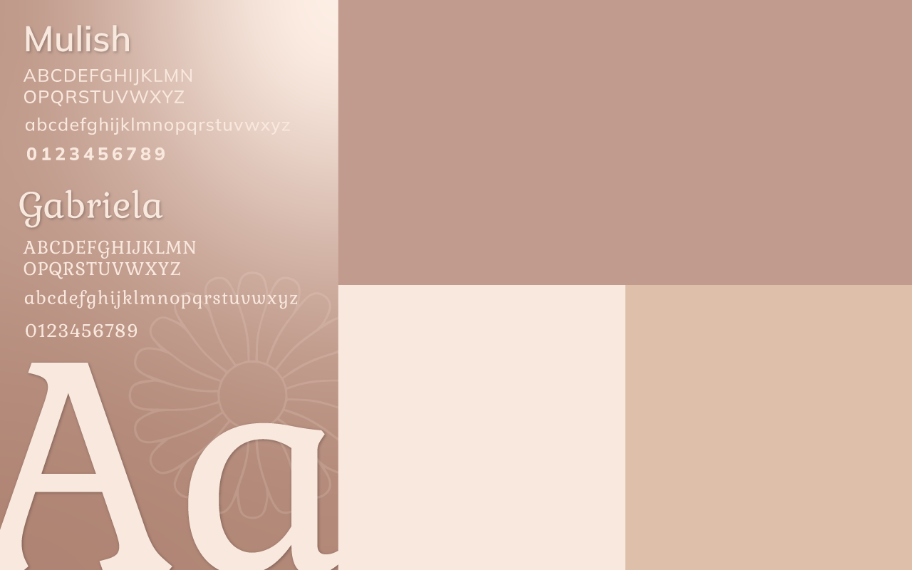 A paleta de cores traz tons terrosos claros, como marrom, marfim e areia, que remetem ao natural e criam uma sensação de proximidade e aconchego. O marrom suave do logotipo traz equilíbrio e contraste, sem perder a delicadeza.